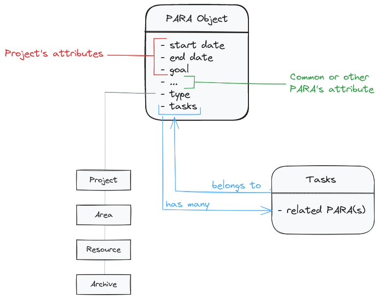 While tasks aren't a core component of the PARA method, many users create a separate database for them, optionally linked to projects.