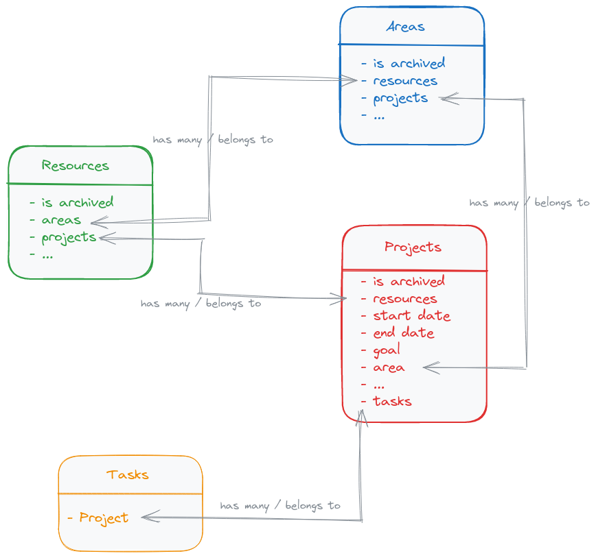 - Think of resources as an enhanced bookmarking system. They go beyond simple links and can store various types of information, including files, databases, and more (depending on your chosen note-taking app). The beauty of resources is their flexibility. They can be linked to any relevant area or project, or even both, but this linking is entirely optional.