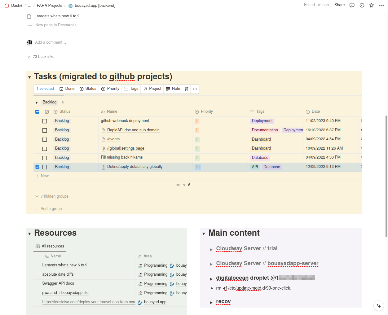 To facilitate quick access to tasks and resources, I designed custom templates for projects and areas. These templates display lists of relevant tasks and resources filtered by the current project or area.