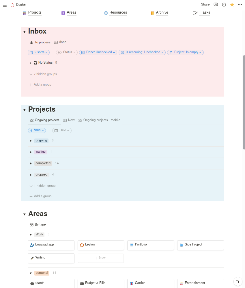 - Projects vs. Areas: Projects are temporary, goal-oriented endeavors with deadlines. Areas, on the other hand, represent ongoing aspects of your life where information accumulates, like "Health" or "Career."
